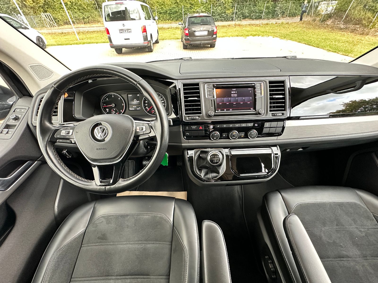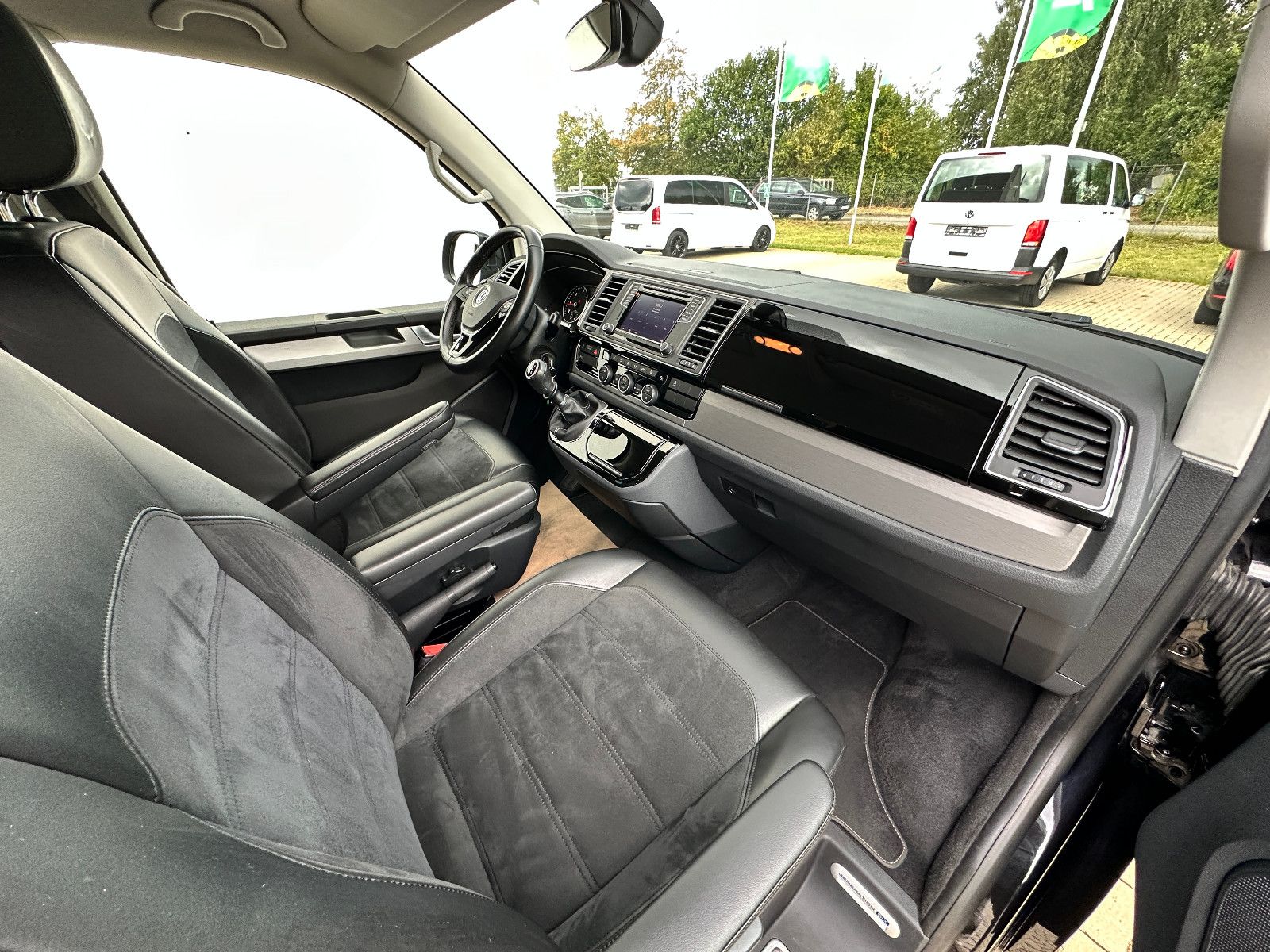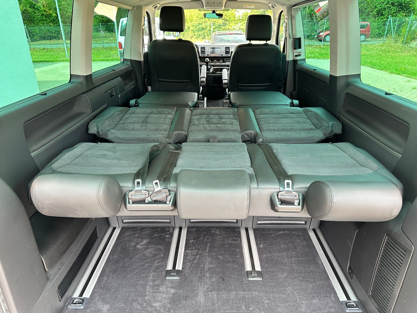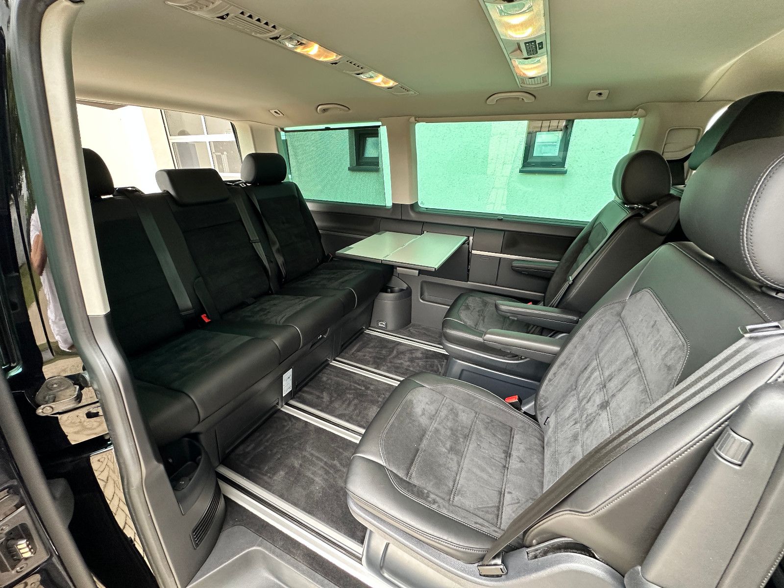 • Weitere Ausstattung: Abdeckung Schiebetürleiste, Airbag Beifahrer abschaltbar, Airbag Fahrer-/Beifahrerseite, Armaturentafel Komfort, Audiosystem Composition Media (Radio/CD-Player, MP3-Wiedergabefunktion), Ausstattungs-Paket Licht + Sicht, Außenspiegel elektr. verstell-, heiz- und anklappbar, Außenspiegel konvex, links, Außenspiegel konvex, rechts, Außenspiegel und Türgriffe außen in Wagenfarbe, Bodenbelag im Fahrerhaus: Teppich, Bodenbelag: Teppich verstärkt, Chromleisten Stoßfänger vorn, seitlich und Heckklappe unten, Doppeltonfanfare, Dämmglas-Paket, Fahrassistenz-System: Autom. Distanzregelung (ACC) und Umfeldbeobachtungssystem (Front Assist), Fahrassistenz-System: Bremsassistent (HBA), Fahrassistenz-System: Einparkhilfe vorn und hinten, Fahrassistenz-System: Multikollisionsbremse (Multi Collision Brake), Fahrassistenz-System: Müdigkeitserkennungs-Sensor, Fahrassistenz-System: Spurwechselassistent (Side Assist / Blind Spot Sensor), Fenster im Lade-/FG-Raum: - feststehend, vorn und hinten links, Fenster im Lade-/FG-Raum: - feststehend, vorn und hinten rechts, Funkschlüssel (2) klappbar, Fußmatten Fahrerhaus: Velours, Gepäckraumabdeckung / Rollo, Haltegriffe A-Säulen, Handschuhfach abschließbar, Heckklappe mit Verglasung, Heckscheibe heizbar, mit Wischanlage, Innenausstattung: Dekoreinlagen Dark Silver brushed (Dekorband Black Glossy), Innenleuchten im Fahrerhaus: Leseleuchten vorn (2), Innenleuchten im Lade-/FG-Raum: Trittstufenleuchten, Innenraumfilter: Pollenfilter, Karosserie/Aufbau: Bus, Kindersicherung an den Schiebetüren, Klapptisch integriert Lade-/Fahrgastraum, Klimaautomatik Climatronic (Fahrerhaus + Lade-/Fahrgastraum), Kraftstofftank: 80 Ltr., Kühlergrill schwarz lackiert, mit Chromleisten, Ladekanten-/ Trittstufenabdeckungen in Edelstahl, Lenksäule (Lenkrad) verstellbar, LM-Felgen, Mobiltelefon Schnittstelle Bluetooth, Motor 2,0 Ltr. - 110 kW TDI, Multifunktionsanzeige Premium (Farbdisplay), Multimedia-Schnittstelle USB (iPhone / iPod) mit AUX-IN, Nichtraucher-Paket, Radstand 3000 mm, Reifen-Reparaturkit, Reifenkontroll-Anzeige, Schadstoffarm nach Abgasnorm Euro 6d-TEMP, Scheinwerfer und Heckleuchten LED, Schiebetür Lade-/Fahrgastraum rechts, SCR-System (AdBlue-Technologie), Seitenairbag / Kopfairbag (Curtain-Airbag) vorn, Seitenscheiben Dämmglas, Sitzbezug / Polsterung: Alcantara, Sitze im Fahrerhaus: Beifahrersitz Komfort, Sitze im Fahrerhaus: Fahrer- und Beifahrersitz heizbar, Sitze im Fahrerhaus: Fahrer- und Beifahrersitz höhenverstellbar, Sitze im Fahrerhaus: Fahrersitz Komfort, Sitze im Fahrerhaus: Lendenwirbelstützen Fahrer- und Beifahrersitz, Sitze im Lade-/FG-Raum: 1.Reihe, 2 Drehsitze, Sitze im Lade-/FG-Raum: 2.Reihe, 3er-Sitzbank, Sonnenblenden mit Spiegel (beleuchtet), Sonnenschutzrollo im Fahrgastraum, Start/Stop-Anlage Motor, Steckdose (12V-Anschluß) im Fahrerhaus, Stoßfänger in Wagenfarbe, Türablagekasten vorn, Verkleidung im Lade-/FG-Raum: Komfort, Zentralverriegelung mit Fernbedienung und Innenbetätigung, Zuheizer, Zul. Gesamtgewicht 3,00 t
