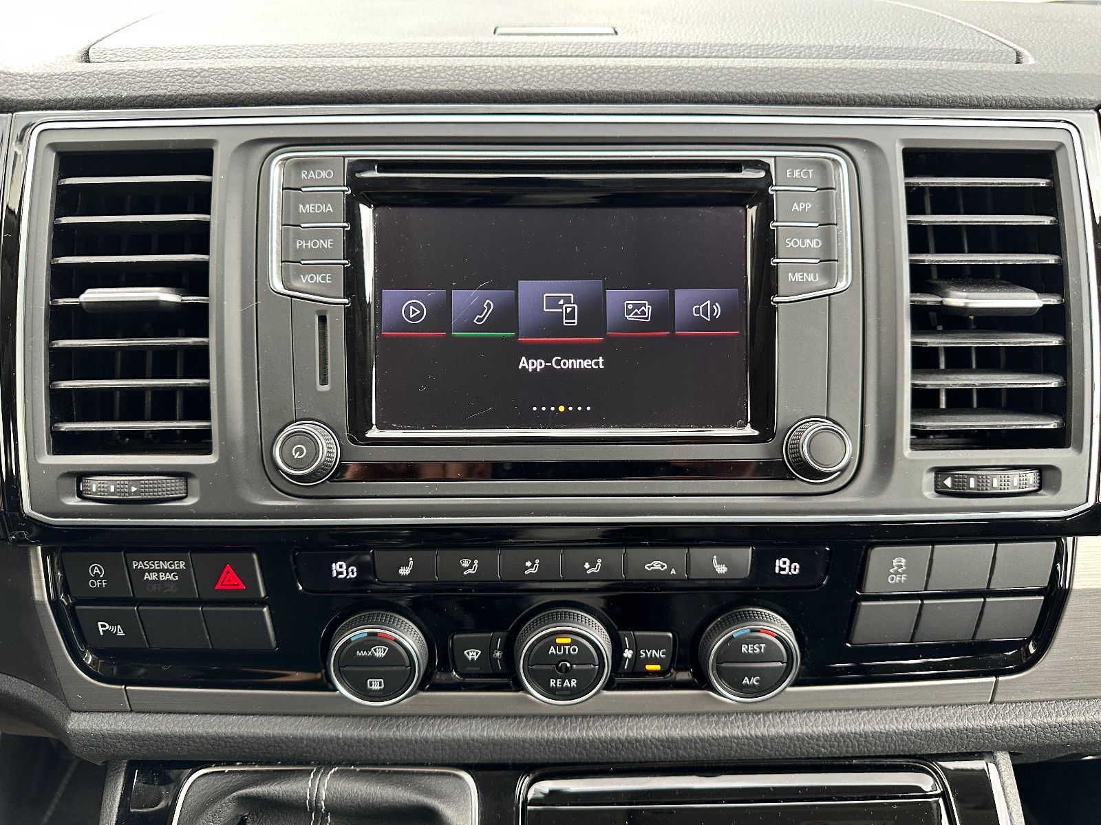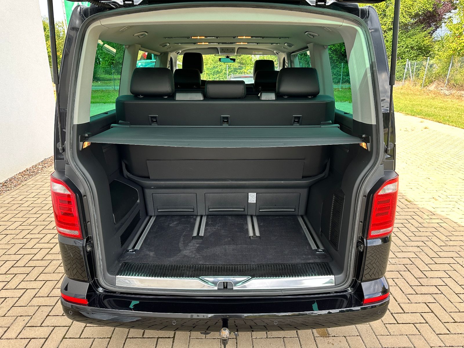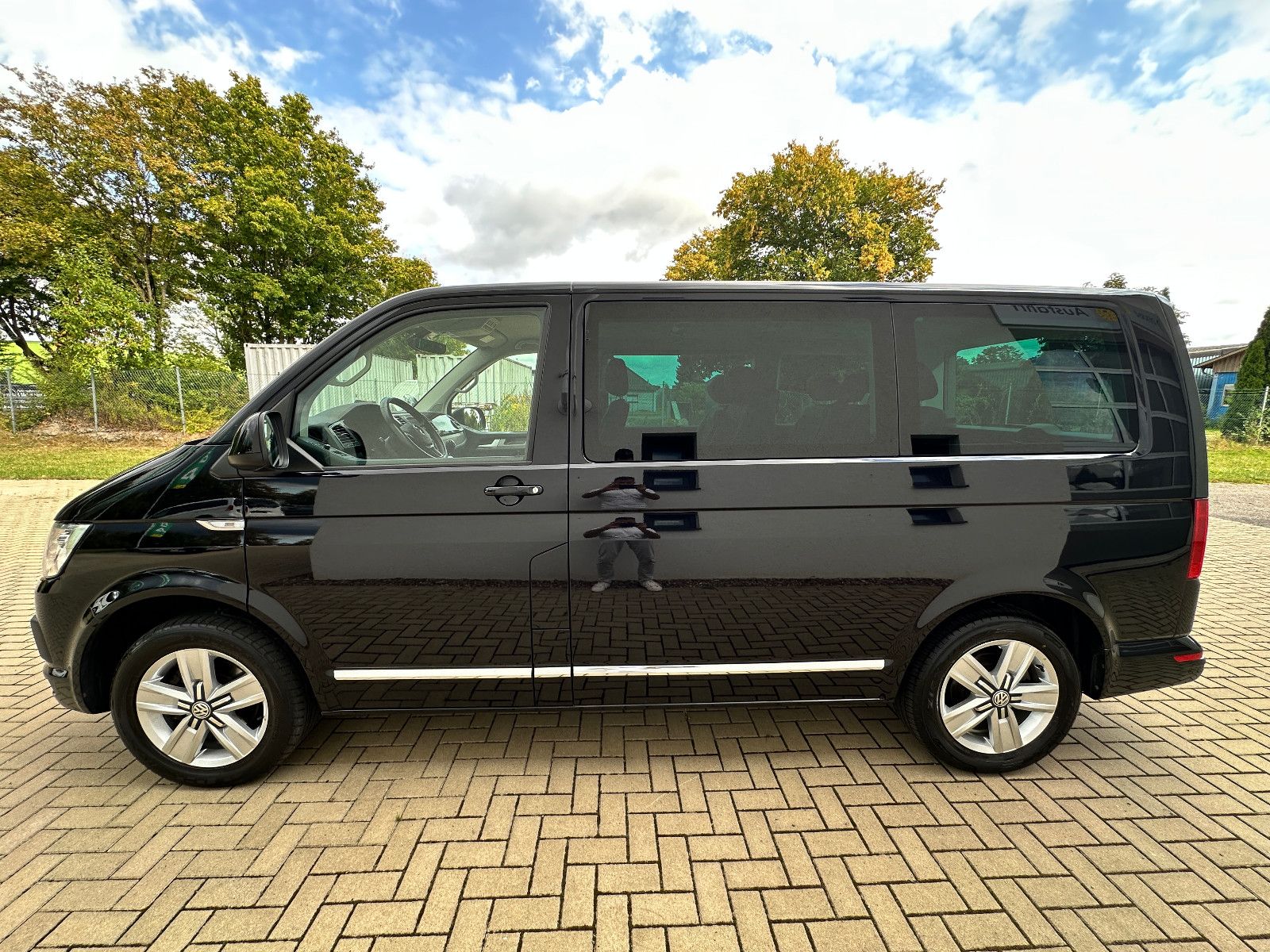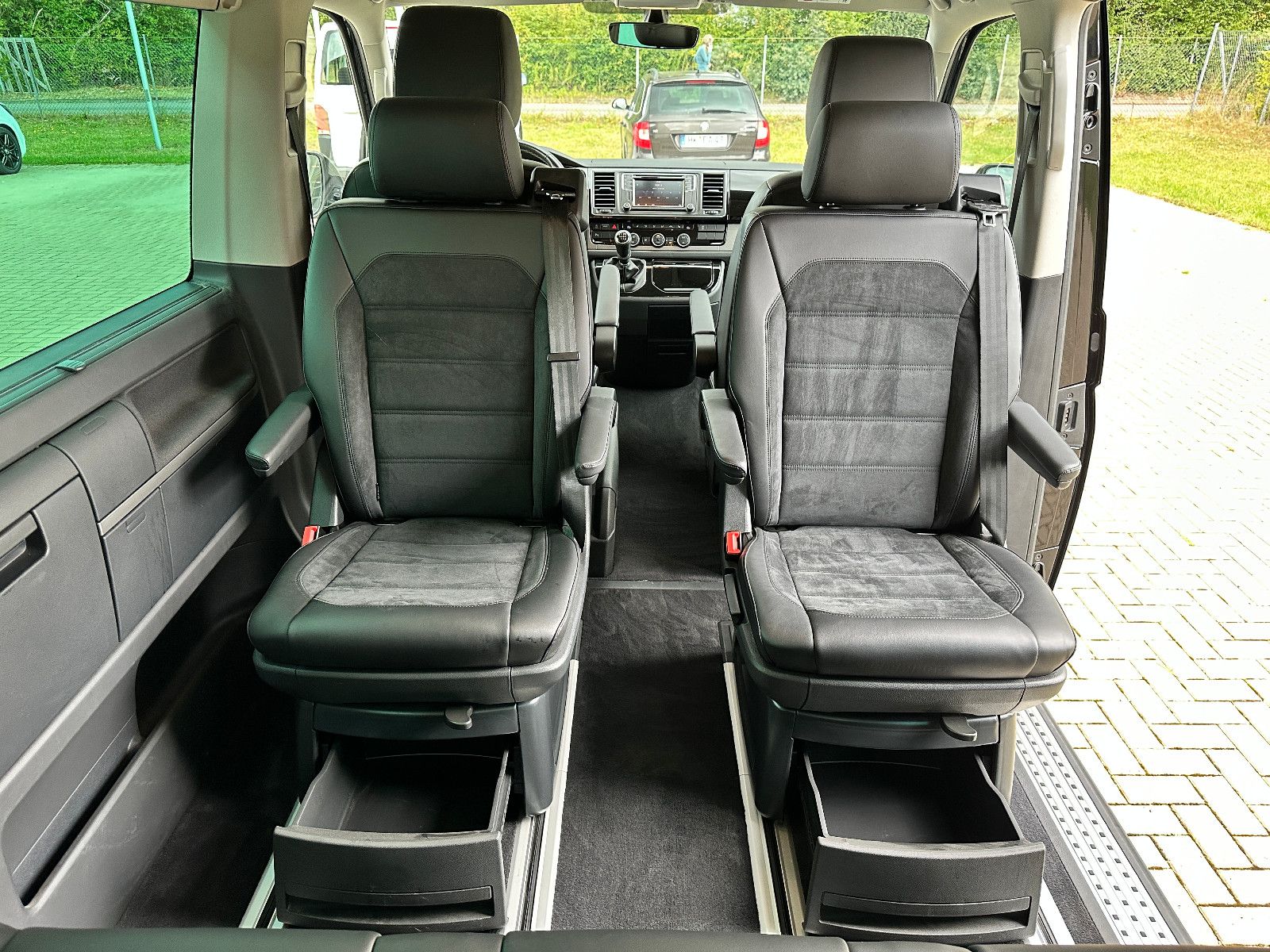 • Weitere Ausstattung: Abdeckung Schiebetürleiste, Airbag Beifahrer abschaltbar, Airbag Fahrer-/Beifahrerseite, Armaturentafel Komfort, Audiosystem Composition Media (Radio/CD-Player, MP3-Wiedergabefunktion), Ausstattungs-Paket Licht + Sicht, Außenspiegel elektr. verstell-, heiz- und anklappbar, Außenspiegel konvex, links, Außenspiegel konvex, rechts, Außenspiegel und Türgriffe außen in Wagenfarbe, Bodenbelag im Fahrerhaus: Teppich, Bodenbelag: Teppich verstärkt, Chromleisten Stoßfänger vorn, seitlich und Heckklappe unten, Doppeltonfanfare, Dämmglas-Paket, Fahrassistenz-System: Autom. Distanzregelung (ACC) und Umfeldbeobachtungssystem (Front Assist), Fahrassistenz-System: Bremsassistent (HBA), Fahrassistenz-System: Einparkhilfe vorn und hinten, Fahrassistenz-System: Multikollisionsbremse (Multi Collision Brake), Fahrassistenz-System: Müdigkeitserkennungs-Sensor, Fahrassistenz-System: Spurwechselassistent (Side Assist / Blind Spot Sensor), Fenster im Lade-/FG-Raum: - feststehend, vorn und hinten links, Fenster im Lade-/FG-Raum: - feststehend, vorn und hinten rechts, Funkschlüssel (2) klappbar, Fußmatten Fahrerhaus: Velours, Gepäckraumabdeckung / Rollo, Haltegriffe A-Säulen, Handschuhfach abschließbar, Heckklappe mit Verglasung, Heckscheibe heizbar, mit Wischanlage, Innenausstattung: Dekoreinlagen Dark Silver brushed (Dekorband Black Glossy), Innenleuchten im Fahrerhaus: Leseleuchten vorn (2), Innenleuchten im Lade-/FG-Raum: Trittstufenleuchten, Innenraumfilter: Pollenfilter, Karosserie/Aufbau: Bus, Kindersicherung an den Schiebetüren, Klapptisch integriert Lade-/Fahrgastraum, Klimaautomatik Climatronic (Fahrerhaus + Lade-/Fahrgastraum), Kraftstofftank: 80 Ltr., Kühlergrill schwarz lackiert, mit Chromleisten, Ladekanten-/ Trittstufenabdeckungen in Edelstahl, Lenksäule (Lenkrad) verstellbar, LM-Felgen, Mobiltelefon Schnittstelle Bluetooth, Motor 2,0 Ltr. - 110 kW TDI, Multifunktionsanzeige Premium (Farbdisplay), Multimedia-Schnittstelle USB (iPhone / iPod) mit AUX-IN, Nichtraucher-Paket, Radstand 3000 mm, Reifen-Reparaturkit, Reifenkontroll-Anzeige, Schadstoffarm nach Abgasnorm Euro 6d-TEMP, Scheinwerfer und Heckleuchten LED, Schiebetür Lade-/Fahrgastraum rechts, SCR-System (AdBlue-Technologie), Seitenairbag / Kopfairbag (Curtain-Airbag) vorn, Seitenscheiben Dämmglas, Sitzbezug / Polsterung: Alcantara, Sitze im Fahrerhaus: Beifahrersitz Komfort, Sitze im Fahrerhaus: Fahrer- und Beifahrersitz heizbar, Sitze im Fahrerhaus: Fahrer- und Beifahrersitz höhenverstellbar, Sitze im Fahrerhaus: Fahrersitz Komfort, Sitze im Fahrerhaus: Lendenwirbelstützen Fahrer- und Beifahrersitz, Sitze im Lade-/FG-Raum: 1.Reihe, 2 Drehsitze, Sitze im Lade-/FG-Raum: 2.Reihe, 3er-Sitzbank, Sonnenblenden mit Spiegel (beleuchtet), Sonnenschutzrollo im Fahrgastraum, Start/Stop-Anlage Motor, Steckdose (12V-Anschluß) im Fahrerhaus, Stoßfänger in Wagenfarbe, Türablagekasten vorn, Verkleidung im Lade-/FG-Raum: Komfort, Zentralverriegelung mit Fernbedienung und Innenbetätigung, Zuheizer, Zul. Gesamtgewicht 3,00 t